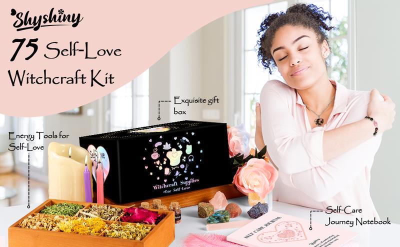 Self-Love Ritual Kit 75-Pack with 30+ Positive-Message Capsule Bottles, Self-Love Spell Kit with Self-Care Journal Workbook Witchy Gifts for Women